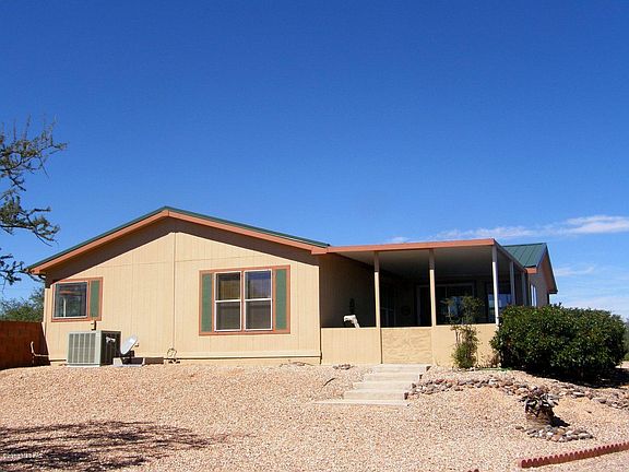 JUST REDUCED $30,500!! Great horse property on 13+ acres with incredible mountain views in all directions. From the entry into the great room with a open floor plan & fireplace with a heatilator. Three bedrooms with a split master bedroom with a walk in closet& bath with separate tub & shower. Large well designed island kitchen with dining. 2 additional bedrooms, bath & laundry room with a 1/2 bath.3 & 1/2 car garage, large covered patio overlooking the back yard & another covered patio off the dining area where you can sit & enjoy the great views. Great horse set up with 2 stalls that could be used as 4 stalls, 12x16 tack room & an arena with a round pen. Great for horse lovers with lots of places to ride. A short distance off SR-80 with an easy commute to Tucson & Sierra Vista