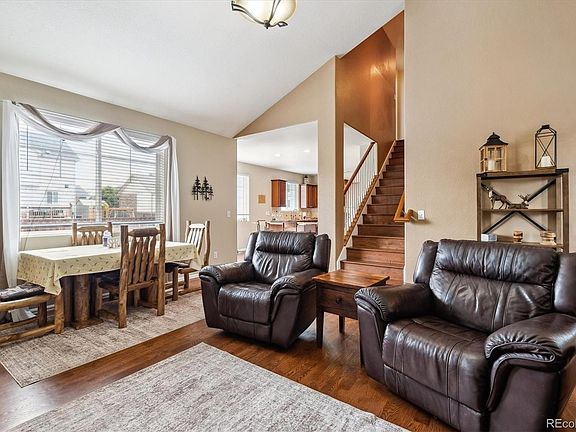 Welcome to this charming and spacious 3-bedroom, 3-bathroom two-story home nestled in the desirable Adonea community! Featuring an open floor plan with vaulted ceilings and beautiful wood floors, this home offers both comfort and style. The kitchen features granite countertops, stainless steel appliances, a center island, pantry, and abundant maple cabinetry. Upstairs, you'll find the spacious primary bedroom with vaulted ceilings a large walk-in closet, and full bathroom along with two additional bedrooms and a full bathroom—perfect for family, guests, or a home office setup. The unfinished basement is brimming with potential—complete with rough-ins for a fourth bathroom and plenty of room to add a bedroom, home theater, gym, or flex space tailored to your needs. A rare three-car garage provides added convenience and generous storage. Step outside to a serene, private backyard with a lovely patio, perfect for relaxing or entertaining. Brand new roof in March. This home offers easy access to Denver International Airport and is close to Southlands Mall for shopping, dining, and entertainment. Commuters will appreciate the proximity to E-470 and I-70, making downtown Denver and the Denver Tech Center (DTC) just 30–35 minutes away. Enjoy the balance of peaceful suburban living with access to everything the metro area has to offer.
