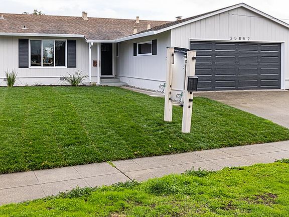 Nestle in the Mt. Eden neighborhood, this single level home has been thoughtfully updated w/ modern finishes. Gather in the spacious living room w/ floor-to-ceiling fireplace & slider door leading to the backyard; ideal for your indoor/outdoor entertaining. Enjoying cooking in the updated kitchen w/ shaker cabinetry, Quartz countertops & S/S appliances. The primary en-suite features a stunning tiled shower w/ custom glass door & decorative vanity. The hall bathroom features a beautiful shower over tub. The generously sized backyard allows plentiful space for outdoor entertaining. Additionally, this home features dual pane windows, hardwood flooring, central heating & A/C system, recessed lighting & designer light fixtures. An attached two-car garage & a commuter-friendly location will bring plenty of convenience to your daily life. Conveniently located near Chabot College, local shops, restaurants, Seafood City, Southland Mall, the 92 & 880 freeways. Hurry! This home wont last!
