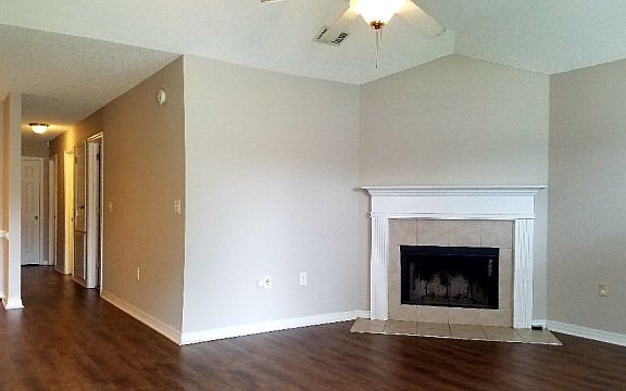 This beautiful and charming brick home with landscaped and manicured lawn conveniently located in the heart of Daphne sits on corner lot and offers wonderful open floor plan. Home is nicely finished out with plantation blinds, new (one-year per seller) flooring and fresh paint. Master suite has walk-in closet with its own a/c vent (this is great for keeping the closet fresh) and this bedroom opens to the enclosed back porch. Open and spacious living room has attractive wood burning fireplace and overlooks front lawn. Dining offers formal or informal arrangement plus convenient breakfast bar and overlooks attractive kitchen with natural wood cabinets. Electric oven and dishwasher are included. Laundry room with storage space off kitchen opens to screen enclosed patio plus separate open patio for cooking out, star-gazing, or soaking in some sun. Ceiling fans can be found in living room, all three bedrooms, and even the garage - how great is that! Fantastic for air circulation as you work