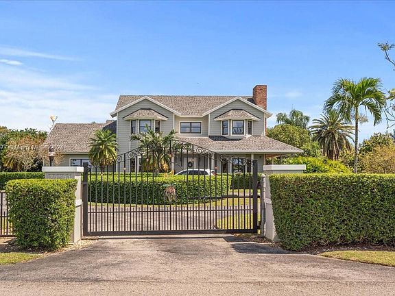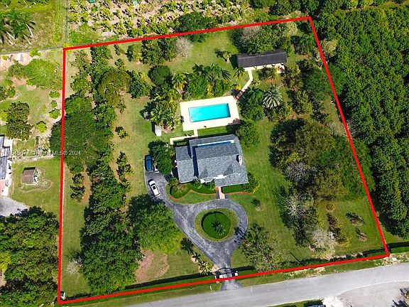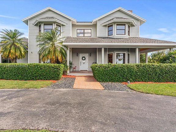 This graceful 2-story Southern Living Colonial-inspired home offers a private haven on a lush 2.5-acre estate in The Redland. The symmetrical facade is complemented by a wraparound porch and circular driveway. Inside, 3 bedrooms, including an owners suite w/ a Jacuzzi and walk-in closet, offer a comfortable retreat. Oak flooring, dual fireplaces in the office & family room, & a spacious kitchen suited for gatherings define the interior. Outside, the quintessential South Florida experience is captured w/a spacious 50x20 pool designed for laps & leisure, surrounded by a diverse collection of fruit trees.The property includes horse stalls, a tack room, over-sized garage, electric gate, newer roof & a 55KW generator that powers the entire home, ensuring a blend of rural charm and convenience.