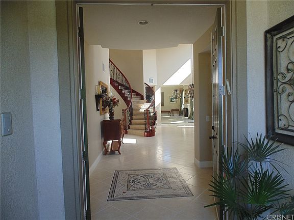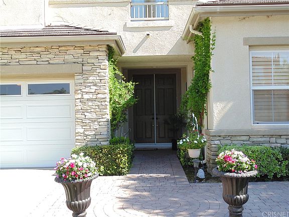 TOP OF THE HILL. GORGEOUS HOME in the prestigious Twilight Vista track of Stevenson Ranch. Large 5 Bedroom 4.5 bath home with one bedroom and a bathroom downstairs can be for guest, home office or mother in law. Very open Floor plan with High ceilings and Recessed lights. Beautiful tile floors. The whole upstairs has brand new Bamboo wood floor.Every room has a ceiling fan. Remodeled tile floor in each bathroom.The Kitchen has an island with Granite counters and all stainless steel appliances with a walk-in pantry, Five burner stove top and Double ovens. Kitchen opens to a large family room and there is a HUGE BONUS ROOM perfect for entertaining or great for a pool table. Wine storage under stairs. Beautiful custom wrought iron railings. A true formal Living room or dining room. Wooden shutters throughout the home. One of the largest custom patios and Decks in the area with access from the back yard as well as the Master Suite with views of surrounding mountains. The Master has double door entry stand alone shower and tub His and her locking closets and dual sinks. Sliding glass door from family room leads to covered patio with built in Ceiling fans. Fountain creates a peaceful feeling in nice sized back yard with BBQ Area. Dual AC Units one for upstairs and the other for downstairs. Built in 2001 for the original owners. All of this for under 925,000.