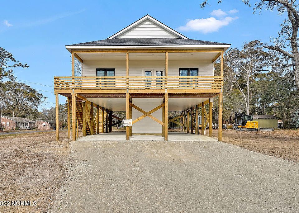 WATERFRONT COMMUNITY !! This AMAZING ''to-be-built'' home is on a DOUBLE LOT and it is near the dock & pier on the Intracoastal Waterway ! A concrete pad underneath offers plenty of room for parking your boat, trailer, small camper, jet skis or vehicles under this piling home with porches on the front & back of the house to enjoy all of the natural views. The home has a vaulted ceiling line running through the open concept living & dining space. The kitchen will be built with white Shaker style soft-close style cabinetry and showcases a 'coffee & wine' bar area beside the pantry plus floating butcher block shelves secured with trendy industrial accents. The spacious vaulted ceiling in the kitchen extends the open floorplan into the family room. Large vanities w/ double sinks enhance both bathrooms with a walk-in shower in the master bath. The pictures on the listing are an example of homes that the builder has completed in this area & includes an enclosed storage area and an outdoor shower. This is an ICW Water Access Community. The Sabal Palm Cottage is located in the Sea View Community 3 miles from the Holden Beach Bridge where you can launch your boat from the NC Public Wildlife ramp, located centrally between Wilmington, NC and Myrtle Beach, SC. A great neighborhood to walk your dog, cast out your fishing pole, throw in your kayak, bike ride, have a fire pit, enjoy riding a golf cart and enjoy the 4th of July festivities. The Sea View Community has its own private gated dock on the ICW and a gated community pool, exclusive to homeowners. Sea View is a one of kind Water Access Community with low HOA's and friendly people. You will feel like you are a million miles away, yet the grocery store and nearby seafood restaurants are only 3 miles down the road. Call today to see this beautiful new construction at a price that you can afford. This is a 'spec' home and a builder's deposit will be required. Call me today to view other homes constructed by this builder !