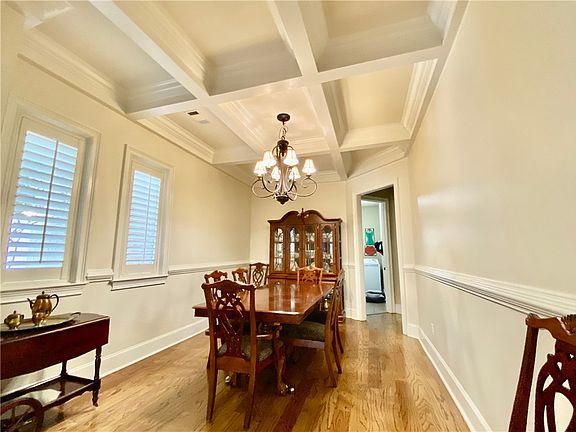 • Description: Coffered Ceiling with Plantation Shutters,Flooring: Wood