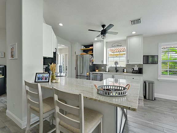 3 Bedroom/2 Bath Villa with water views! Great Location in the highly sought after gated community of Riverwalk! Roof and Gutters (2023), GE Cafe Stainless Appliances (2023), HVAC with UV Lights (2022),Hot Water Heater(2023) Washer/Dryer (2021), Interior Paint, Base Boards, Extended Patio Pavers, Fence,(2024) Wood-Like Porcelain Tile Floors, Accordion Shutters, Updated Central Vac, Granite Counters, Glass Backsplash & Custom Wainscoting Details. Exterior Ring Camera and New hard wired EV charger in the Oversized 2 car garage. Riverwalk's Town Center offers 3 Heated Pools, Tennis Courts, PIckle Ball, Fitness Center,Bocce Court,Tot Lot,Post Office & Restaurant! Great Location close to highways, Airport, Shopping, Restaurants & Beaches.