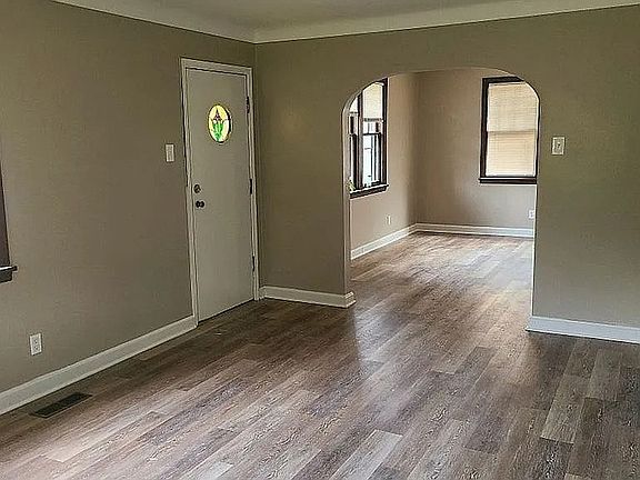 Make an appointment to view this 3 bedroom 1 bathroom home that features a two-car detached garage, a large living space and located on a quiet street. The neighborhood is family friendly. The home has an updated kitchen and bathroom with modern fixtures, and features a dedicated dining room. The master bedroom is large enough to fit a king-size bed. Additional storage is available in the finished basement. Newer floors, window blinds, new furnace, new water heater, all new kitchen appliances and central AC makes this the perfect home. Washer and dryer hookups are available in the house in the dedicated laundry room. No utility fees are included in the "rent" amount. Tenant responsible for all utilities and lawn care. Electric Dryers only.