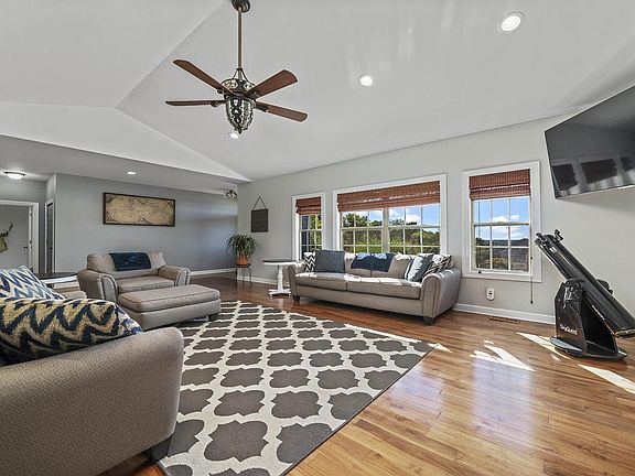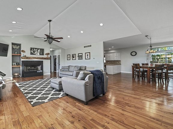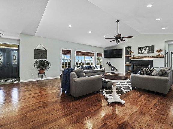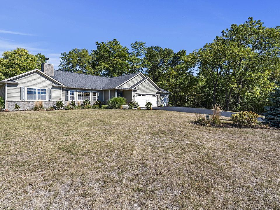 Beautifully maintained and updated ranch in the highly desirable Timberhills Subdivision in Oregon. PANORAMIC VIEWS situated on just under 3 acres. This inviting home features 3 bedrooms, 2 full bathrooms and 1,900 sq. ft. of living space. When you walk in you will be in awe over the open floor plan with solid hickory hardwood floors, cathedral ceiling, and custom cedar mantle over the gas fireplace overlooking the valley. Large master suite with stunning custom walk-in shower and walk-in closet. The kitchen features stainless steel appliances, a large peninsula, an abundance of storage and counterspace all great for entertaining. Main floor laundry, full basement roughed in for additional bath, egress window and plenty of storage. Attached 3 car heated garage with 220v service. The exterior is beautifully landscaped with mature trees, a large 16x24 walk-off deck and plenty of privacy. Enjoy your backyard oasis with a park-like setting. HIGH SPEED INTERNET. AGENT OWNED.