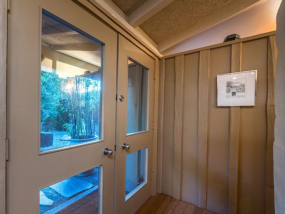 Stunning updated Cliff May Pool home off Van Ness Extension. All the architectural details you would expect from this true classic California genre walls of glass, beamed ceilings, private courtyards & indoor/outdoor living at it's finest. Beautiful living room w/fireplace viewing giant bamboo garden, updated kitchen, dining with courtyard for your al fresco evenings, bamboo flooring, updated baths, & a fabulous master suite with fireplace, walk-in closet & private courtyard. The wonderfully landscaped grounds provide a secluded, serene, very zen vibe from the time you walk through the gate to strolling the pathways, and lounge time by the pool. This is truly a very special home!