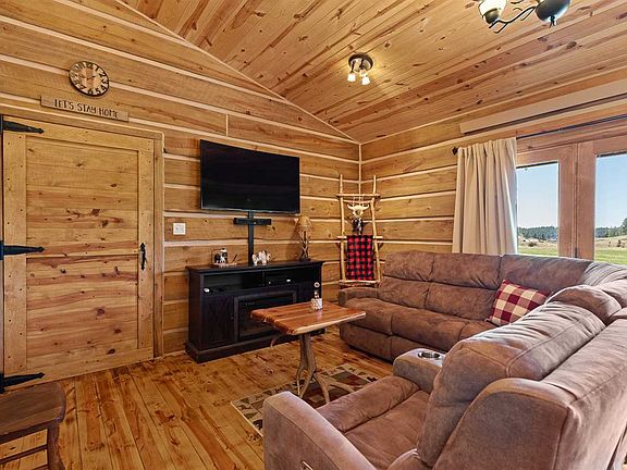 Enjoy the beauty of the Black Hills relaxing in this log cabin style home just south of Custer. Here is your opportunity to own that small horse property that you have dreamed about. Located just south of Custer a few miles, this 29.31 acres has everything that most people are looking for in their dream property: Granite rock out croppings. Year around flowing Beaver Creek meandering through the valley. US Highway 385 access. USFS lands almost completely surround the property, with numerous trails and the very popular Mickelson Trail just across the highway perfect for enjoying those days of hiking, biking and horseback riding. A cute as a button, cabin style log home featuring: 2 bedroom- 2 bathrooms, wood floors, tongue & groove interior walls, attached two vehicle garage, sauna, she-shed, and a man-cave workshop with overhead door. Newly remodeled bunkhouse perfect for housing family or friends or to use as a vacation rental property. Two septic systems. Excellent water well. Just a few minute drive to Custer, Pringle, Hill City, Hot Springs and less than 1 hour to Rapid City. Only minutes of driving time to the Black Hills favorite attractions and activities such as: Mt. Rushmore National Memorial, Crazy Horse Memorial, Custer State Park, Wind Cave National Park, Jewel Cave and many more private attractions.