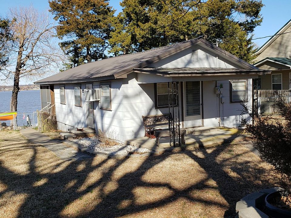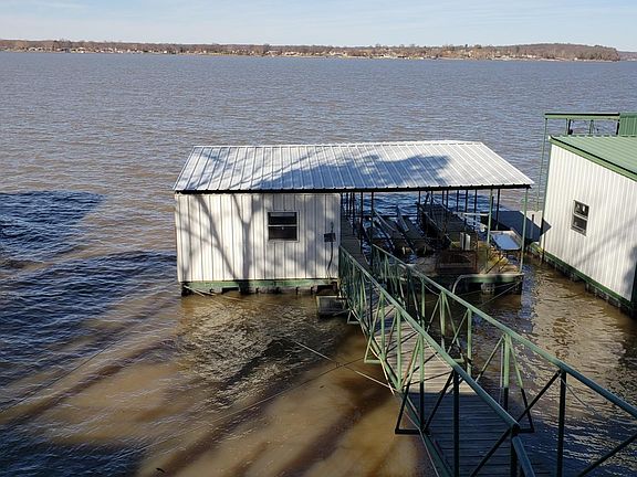 IDEAL FISHING CABIN WITH WONDERFUL COVERED DOCK ON DEEP WATER! Cute, older, open cabin with knotty pine walls, large screened porch, and large covered patio on the lake side. Large 32'x34' boat dock, 2 slips (11'x18' & 11'x28') each with a lift. The dock has a 10'x16' enclosed room/fishig hole, storage, plus a garage door on the side. Fenced yard, small detached garage.