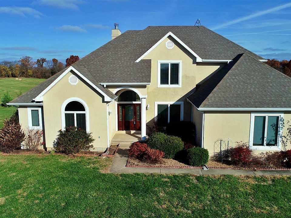 Country living at its best! This gorgeous home is situated on 10.5 acres in NE Sedalia, approximately 3 miles from town. Drive down the lane to this beautiful home where you will find a 24X48 Building with 2 horse stalls and 2 exterior doors, 2 overhead doors, one standard and one 12' door. Workshop area with concrete floor. Walk into this gorgeous home and see the windowed views overlooking the property and the 9' deep inground salt water swimming pool. Enjoy the deck off of the kitchen or relax down below on the patio. Tall ceilings throughout, open concept kitchen, dining, and living area with gorgeous hardwood floors. Kitchen equipped with Whirlpool Appliances, walk-in pantry, island, and has plenty of room for entertaining! Warm up to the beautiful gas fireplace in the living room and enjoy the beautiful built in shelves. Walkout basement has a family room, wet bar and recreation room. The Master bedroom has its own suite, with an office/library, large walk in closet and Master bath. Intercom system, security system, Andersen casement windows throughout. This home has so much to offer and more!!