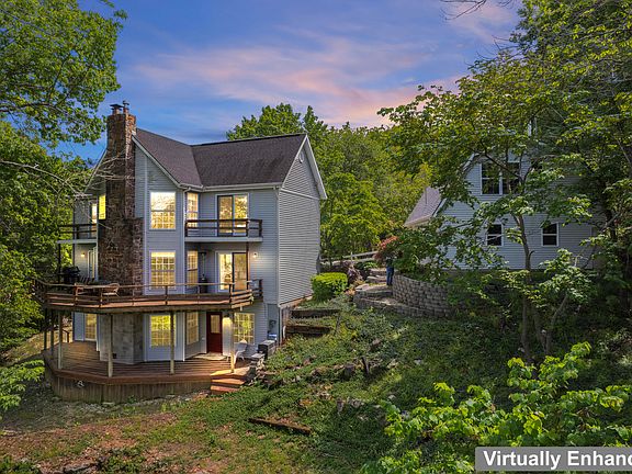 Lakefront Luxury Meets Rustic Charm - A Turnkey Escape on 4 Private Acres. Tucked away on over 4 acres of pristine, secluded land, this beautiful lakefront home is the perfect blend of rustic character and modern comfort. Thoughtfully designed and meticulously maintained, it offers peace, privacy, and panoramic lake views in a truly turnkey package. With two boat slips available for purchase, this property is a dream for water enthusiasts. Whether you prefer quiet mornings on the deck or active days on the water, the natural beauty surrounding this home creates a year-round haven. At the heart of the home is a soaring floor-to-ceiling stone fireplace, a striking focal point that adds warmth and ambiance to the main living area. Throughout the home, rich natural materials and quality craftsmanship shine -- including kitchen floors made from locally harvested hardwoods, adding depth and a connection to the land. With over 2,800 square feet of living space across three levels, the home includes 4 bedrooms, 3 bathrooms, and three spacious living areas, offering plenty of room for both relaxation and entertaining. The layout includes full kitchens on both the upper and lower levels, making it ideal for families who enjoy hosting and gathering across generations or simply having extra space for guests. Additional highlights include: cedar-lined closets throughout for freshness and luxury, Heating and air systems still under warranty, providing added peace of mind, a 24x30 detached garage with ample storage for your lake toys, A quiet, secluded setting with no compromise on scenic views, Turnkey condition -- move-in ready with no updates needed This is more than just a home -- it's a peaceful lakeside retreat where timeless style meets functional design. From cozy nights by the fire to long summer days on the water, every season brings new reasons to love this remarkable property.