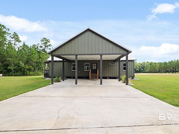 Welcome to an exceptional real estate opportunity at 25867 Goat Cooper Rd, a sprawling 10-acre estate that combines modern comfort with rural charm. With a potential to experience off the grid living, this unique property offers a secluded home, a large hurricane grade workshop, and a half-acre fully stocked pond shared with the property next door, making it ideal for those seeking a private retreat, multi-generational living, or a versatile investment. Custom built in 2021, this 2-bedroom, 2-bathroom residence features Hardie board siding, a tankless water heater, generator hook up, and a spacious open-concept living area. The kitchen is a chefs dream with granite countertops, dark stainless steel appliances, a walk-in pantry, and a large L-shaped island that flows seamlessly into the living room. The master suite offers two walk-in closets, a dual sink vanity, and a luxurious walk-in tiled shower. Outdoor living is made easy with a covered back and side porch featuring a built-in hot tub, as well as a 3-car attached carport. A massive 46'x26' shop with additional boat and tractor lean-tos provides over 2,800 sq. ft. under roof, perfect for hobbies or storage. House is also built for potential to add on if you desire more living space! In the back left corner of the property, includes a green patch for hunting and riding trails through out the property. Located just minutes away from Styx River, a gun range, and an ATV park, this home offers endless outdoor recreational opportunities. With easy access to Interstate 10, you're only a short drive from Mobile and Pensacola! Need more land and another house? Check out these 2 adjoining properties listed: MLS #7453579 (25871 Goat Cooper Rd) & MLS #7453517 (25820 Goat Cooper Rd.) Don't miss your chance to experience this extraordinary home, Schedule your showing today! All measurements are approximate and not guaranteed, buyer to verify. Home to be sold as is/where is. Buyer to verify all information during due diligence