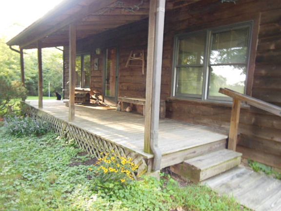 This location is excellent! With 3.3 acres and a gorgeous yard, with several established trees, this property will make a great home place! The home is a Gambrel roof home, with cedar siding, covered porches on both front and rear. There are 2 bedrooms with potential of being a 3rd easily. Upon entering the home you will appreciate the beautiful and timeless woodwork. The living room/dining area are open with tall wood ceilings and exposed beams above the dining area & kitchen. Also on the main floor is a spacious bedroom, bathroom, laundry room, pantry with a pocket door, and a neat workshop/office room. There is also patio doors going to the back porch giving easy access to a great place to relax! The second floor is an open loft area with one bedroom that is huge,a enormous walk in closet, a bonus room that could easily be a third bedroom, and a full bathroom that is also large and has a ton of storage. There is a great view from the 2nd story windows and a nice view of the living room below. This home has been priced understanding that the new buyer will probably want to update flooring and update the roof, allowing the new owners to personalize as they choose. Central heat and air, and 200 amp electric. A few more additional acres may be purchased at additional cost. There is a Clay Water meter already in place but sellers currently use the well. Room Sizes:Living room 24.9x11.9 Kitchen 11.4x12.25, Bed 13.7x11.6, Laundry 9.4x4.2, Bath, 8.2x4.9, Workshop 21.2x10.6, Pantry 7x4, 2nd story bedroom 18.9x10.8, Bonus 9.3x16, Bath 9x8.5