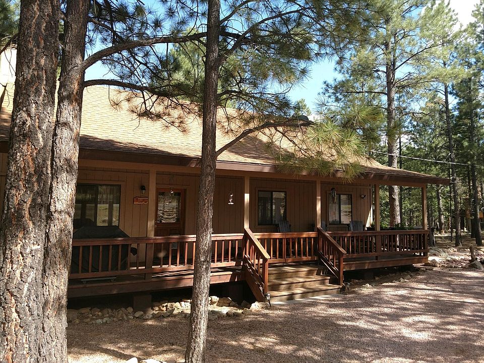 PRIVACY ON THE GREENBELT!! ALMOST AN ACRE OF MAJESTIC PONDEROSA PINES SURROUND THIS PRISTINE CABIN IN THE COOL MOUNTAINS OF HAPPY JACK. CUSTOM 3 BEDROOM, 2 BATH WITH GORGEOUS WOOD FLOORS, WOODEN STAIRCASE, WINDOWS WRAPPED IN WOOD, AND T&G WOOD VAULTED CEILING. EXPANSIVE OPEN FLOOR PLAN WITH BRICK FIREPLACE AND LARGE SUNNY WINDOWS IN THE GREAT ROOM AND DINING ROOM COMBO. SPACIOUS REMODELED KITCHEN WITH STAINLESS STEEL APPLIANCES, NICE-SIZE PANTRY, AND CUSTOM CABINETS WITH PULLOUT DRAWERS. SEPARATE LAUNDRY/MUD ROOM. HUGE EXTERIOR DOG RUN RIGHT OFF THE DECK...RELAX ON THE LARGE COVERED DECK AND EXPERIENCE THE SERENITY OF NATURE...IT'S WAITING FOR YOU!!