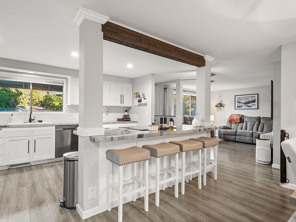 Completely remodeled and move-in ready! This beautiful home combines modern updates with incredible curb appeal. The front yard features low-maintenance landscaping with a drip system and RV/boat parking. Inside, enjoy an open floor plan with newer stainless-steel appliances, a spacious kitchen island with bar seating, and a cozy dining area with a stunning fireplace. The bedrooms are generous in size, including a primary suite with a walk-in closet and granite counters. The fenced backyard offers sprinklers, a shade tree, garden shed, and trailer access through a utility gate. Relax or entertain on the covered patio with a gas firepit hookup in your private outdoor retreat. The two-car garage is equipped with gas heating and extra storage — the perfect finishing touch!