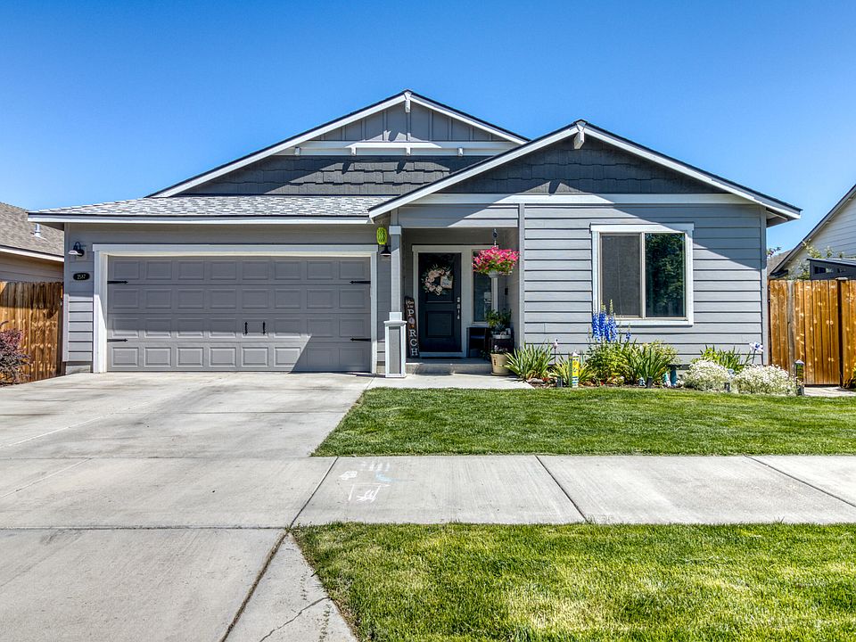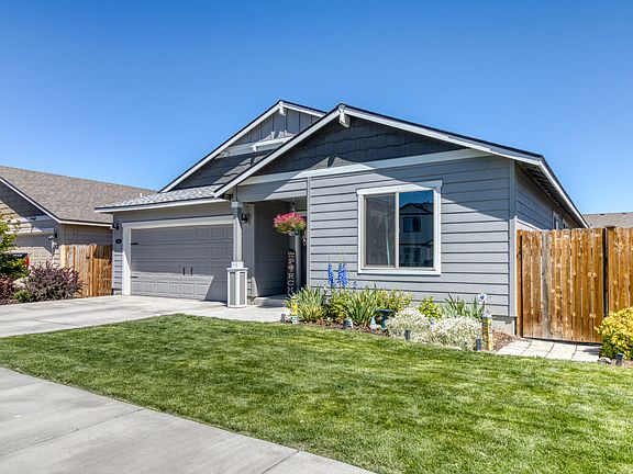 Motivated Seller! Replacement Property Under Contract! Bring All Offers!! Discover comfort and convenience in this single-level home that is a spacious 1668 sqft w/3 beds/2 baths. Built in 2018, this home was designed for effortless living. Outside is a fenced yard, ideal for privacy & security. The covered patio is an oasis for relaxing or entertaining. Easy maintenance with sprinklers in the front and back, ensuring greenery all year. The heart of the home, the kitchen, is a chef's dream with a gas range in the island, s/s appliances, and granite countertops. Retreat to the primary bedroom with a soaking tub, shower, and double sinks to provide a spa-like experience. Located in NW Redmond, this home is conveniently situated close to schools, parks, and walking paths. The side yard is not only practical with a storage shed but also ready for your green thumb with raised beds for planting. This home is more than just a living space; it's a lifestyle waiting for you to enjoy.