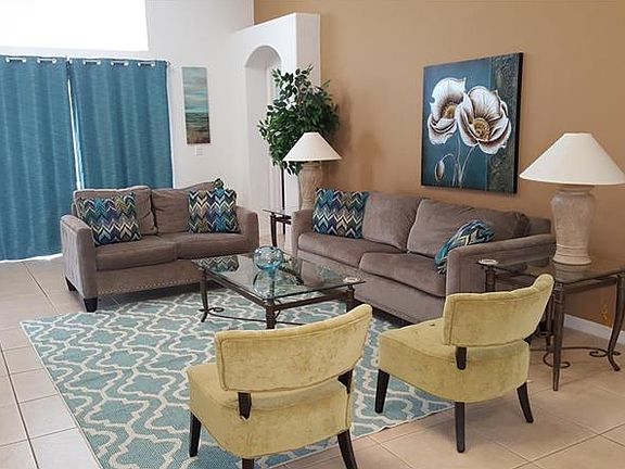This serene and relaxing vacation home is spacious with its 5 bedroom 4 bath layout that overlooks a wooded conservation area allowing for great privacy. It is fully furnished and equipped for private family living or immediate placement into the Central Florida rental market. There are 3 master en-suites and 2 additional twin rooms that can sleep up to 12 quests, all located within a short distance from the theme parks. Sit out by the south western facing pool and spa or under the covered lanai to enjoy the sun and privacy. The eat in kitchen and large dining area offer plenty of space to entertain many family and friends. The exterior of the home has been recently painted and the bedroom floors were upgraded to wood look tiles. The community of IndianCreek is a highly sought-after and known for it's accessibility to Disney World(R), shopping, restaurants, medical, and major roadways to the East and West coast, Orlando Airport, Old Towne and I-Drive. Come enjoy and consider making this "Home Sweet Home".