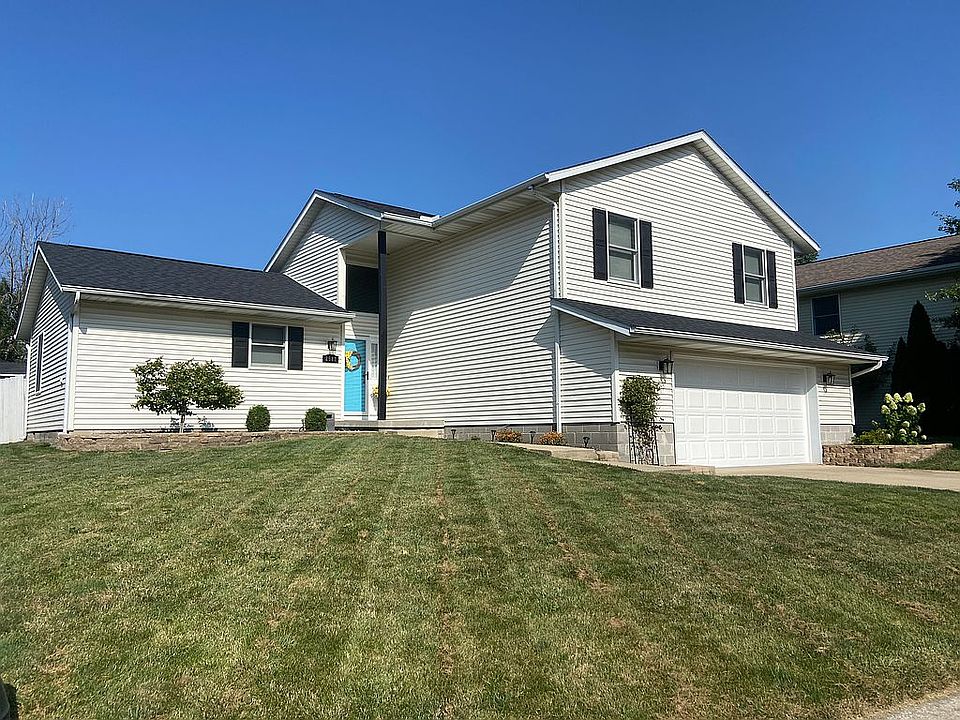 Nestled in the back of the sought-after Wildwood subdivision, this 3-bedroom, 2-bathroom home in Meridian School district welcomes you with a 2-story vaulted ceiling and a cozy gas fireplace. The kitchen boasts plenty of space, and a roomy dining area with charming bay-style windows. Outside, a new deck overlooks the large backyard with an additional spacious garden shed. The main floor offers a master bedroom with a walk-in closet and ensuite bathroom. Additionally, the home has an oversized garage and upstairs, you'll find two well sized spare bedrooms and a secondary full bathroom. Many updates have been made within the last 3 years including a new roof, new Pella windows in the master, Pella sliding door to the backyards, and new vinyl plank floors. All appliances stay and don’t forget about the Richland Community College program! Please call 618-444-6037 to schedule a showing