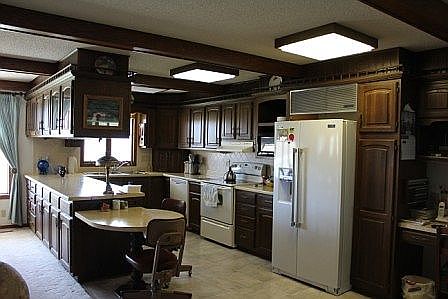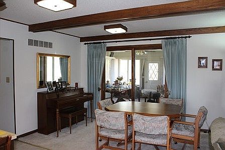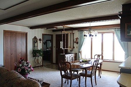 This spacious open floor plan includes a formal dining area, living room with fireplace, informal eating area, and kitchen all within the same space! There are 2 large bedrooms and 2 baths on the main floor, as well as a laundry room with lots of extra storage, and a sunroom with auxilary heat & air. The 2 car attached garage is finished with additional storage, and there is a carport for lawn tractors or trailers. The storage barn is 12' x 20', with a loft. There is a full basement which is mostly unfinished, but does have a brick wood-burning fireplace, full bath, and egress window. The property is on well water, it's own septic system, propane, and Rolling Hills Electric.