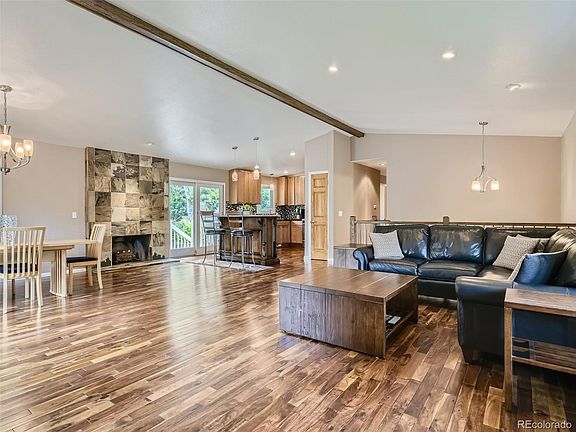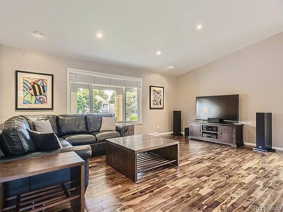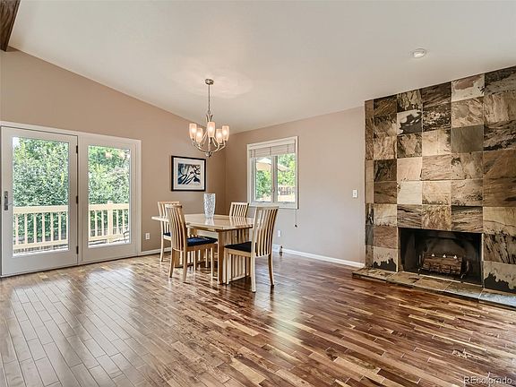 Meticulously cared for, this curated craftsman-style home sits on a spacious corner lot filled with lush vegetation and in close proximity to Bear Creek Greenbelt: a 379-acre preserve with endless trail connections for outdoor adventure toward Denver and The Foothills. Inside, Acacia hardwood risers join handsome hardwoods to produce a generous main-level featuring soaring vaulted ceilings. Large picture frame windows in the living room bathe the open floor plan in natural light and a fireplace in the dining area spreads warmth. A shaded Trex® patio offers ample outdoor living as it wraps around the back of the home. The dapper kitchen features soft-close cabinets, granite countertops, stainless-steel appliances, a pantry for kitchen and food storage, and a window above the sink for dishwashing daydreams. down a brief hallway emerges a full-bath, two secondary bedrooms and the primary suite with an ensuite bath, walk-in closet, glass-enclosed shower and dual pedestal sinks. Gaming and rec rooms, a fourth bedroom and 3/4-bath fill the garden-level basement. At the far end of the space, a mudroom with cabinets and backyard access appears; plus, access to an attached and finished two-car garage outfitted with a convenient workstation.