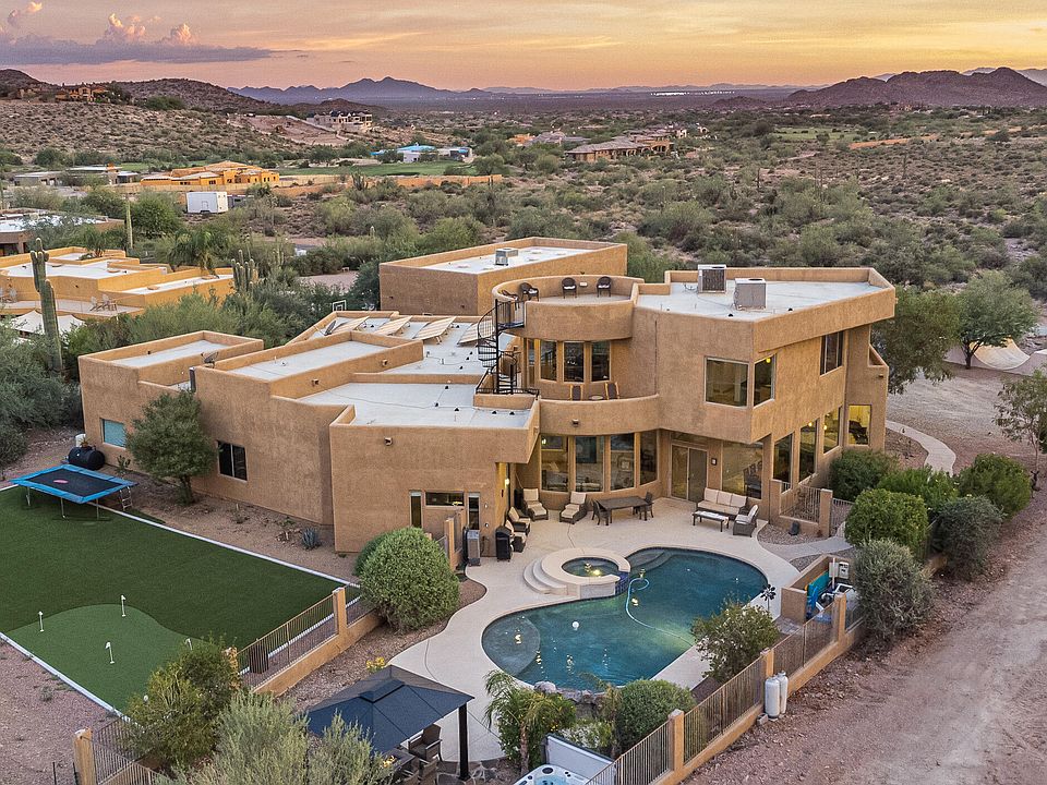 2023 ROOF COATING, 2 NEW AC UNITS IN 2023. 4,245 SF CUSTOM OFFERS SPECTACULAR SUPERSTITION MTN VIEWS & 2020 MEGA 30'X60' SEP CLIMATE CONTROLLED RV GARAGE/SHOP W/HOOK-UPS ($220K). 4 OBSERVATION DECKS=360 VIEWS. GOURMET KITCHEN W/2021 STAINLESS SUB-ZERO FRIG, 2021 WOLFE INDUCTION COOK TOP & OVEN, 2021 BACKSPLASH, WALK-IN PANTRY, SLAB GRANITE COUNTERS, BREAKFAST BAR & WALL OF WINDOWS. HUGE LAUNDRY RM W/STORAGE. DINING & LIVING AREAS HAVE ULTIMATE VIEWS. MAIN MASTER W/MTN VIEWS, DUAL VANITIES, DEEP JETTED TUB & HUGE DOUBLE SHOWER. 4 BDRMS & 3.5 BATHS ON MAIN LEVEL EXCEPT GUEST MASTER SUITE & LOFT W/FP. 2020 ELEC SHADES. HEATED PEBBLETEC POOL/SPA, 2020 HOT TUB & TURF ($30,000). 2022 WELL ($30,000). 2020 OWNED SOLAR SYSTEM ($25,000). 2 GAME RMS: 23X35 & 13X23. EXERCISE RM W/A/C= POTENTIAL CASITA