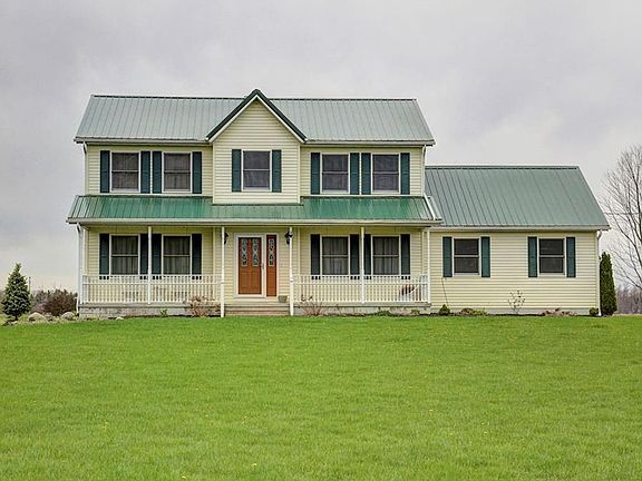 Charming doesn't even begin to describe this home on almost 6 acres with it's own 1/4 acre stocked pond. Summers will be relaxing on your private front porch. The barn was built just 10 years ago with 2 stalls (6 stall capacity) over 2 acres with 3-4 pastures for your horses to enjoy. Stainless steel appliances, plus washer/dryer that are located upstairs (only 3 years old) are included. This home features crown molding in the living room and above the kitchen cabinets, granite counter tops, newe duraceramic tile in the kitchen and all the bathrooms. This home has so many updates including a steel roof that is less than 10 years old (very low utility bills), new garage door, vinyl siding, central air (2014) and new carpet in almost every room. The french doors lead to your new deck where you can relax and watch the stars at night. If you are looking for a turn key, pet free home then this is the one for you! Call for your private viewing today!