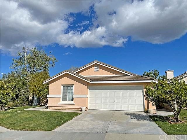 HIGHLY SOUGHT AFTER SINGLE STORY HOME!! Located on a cul-de-sac street, in the prestigious Stevenson Ranch community. This well thought out open floor plan offers 3 bedrooms plus an office or optional 4th bedroom space. The spacious kitchen is open to the family room with ample cabinets and a center island with seating, high ceilings and lots of natural light as well as a cozy fireplace in the family room. The master bedroom offers a walk-in closet and sliding glass door to patio. Great views! Large backyard with patio and filled with fruit trees and can accommodate a pool or play equipment. Light and bright & neutral. Close to highly rated schools. LOW HOA!