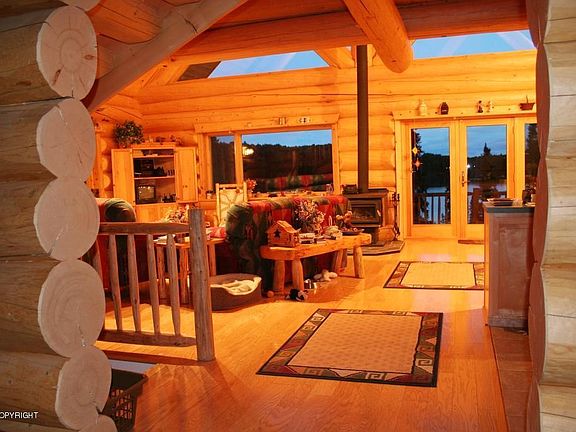 Custom Log Home on 12.9 acres with over 750+/-' lake frontage on Rainbow Lake in Willow, AK. Large hand scribed logs built by one of Alaska's premier log home craftsman. Open floor plan with a full daylight basement. Secluded with a southern exposure and great lake view. Rainbow lake is an unrestricted floatplane and motorized lake with good fishing an wildlife habitat. Adjacent lots available
