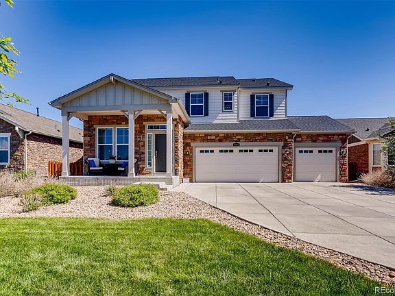 Like brand new! Extremely well kept Lennar home with 4 beds and 4 baths located in lovely Adonea and across the street from the beautiful park and walking distance to both K-8 and 9-12 Vista Peak schools. Don't miss this opportunity to buy a like new home with room to grow in the unfinished basement. You are greeted by a covered front porch and an open entry. Just off the entry is the study leading to the formal dining room. The gourmet kitchen features a center island, granite counters, custom back-splash, gas range, stainless steal appliances and pantry. The kitchen flows into the great room that offers views of a gas fireplace and vaulted ceilings. The generous master suite boasts a great walk-in closet and a gorgeous over sized shower with two heads plus double sinks. The upper level is completed with 3 additional bedrooms, 2 baths, and a laundry room.. The unfinished basement offers tons of storage and room for future expansion. Big 3 car garage with extra driveway space. The fenced backyard is a serene setting with an over-sized patio and extensive landscaping on a rare large lot. Wonderful community with parks, local schools, trails and open space. Easy access to 470 and amenities!