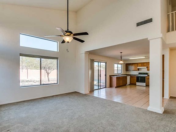 Very well maintained, charming & spacious 4 bedrooms 3 bath home with wall to wall carpet and tile throughout. Open floor plan offers natural light to create warmth throughout this home. Large windows in the dining room and kitchen overlook the spacious backyard. Enjoy beautiful mountain views from both of the upstairs bedrooms. You will appreciate the his and hers closets in the master bedroom, dual sinks in the master bath as well as the separate garden tub and shower. The back yard is large enough to entertain family and friends, and it is ready to make your own. This home is bordered in the rear by a walk path and large green belt. You do not want this treasure to slip by you. Call for an appointment to see this home while you still can. Dishwasher and garbage disposal are as is.