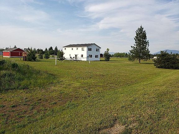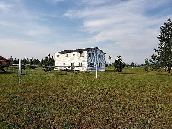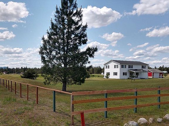 You enter this home from a beautiful covered porch that faces the magnificent Bitterroot Mountain Range. When you enter, the home is very spacious from the front entry into the living room and kitchen. The kitchen features a double wall oven and cooktop, plenty of storage and a breakfast bar. There is one bedroom (non-conforming) on the main level as well as the laundry room. There are plenty of windows for a lot of natural light. Upstairs there are 4 bedrooms a very large master bedroom & bathroom with an enormous jetted tub. Outside the home you will find a very large deck off the back sliding door, a huge detached garage/shop, two-story playground with a climbing wall and a 70 foot zipline. This home is located on 4.8 mostly fenced acres with lots of trees including apple trees. Nice, rural location but only 10 minutes to town or a very short distance to the new Super 1 and Silverwood Theme Park.