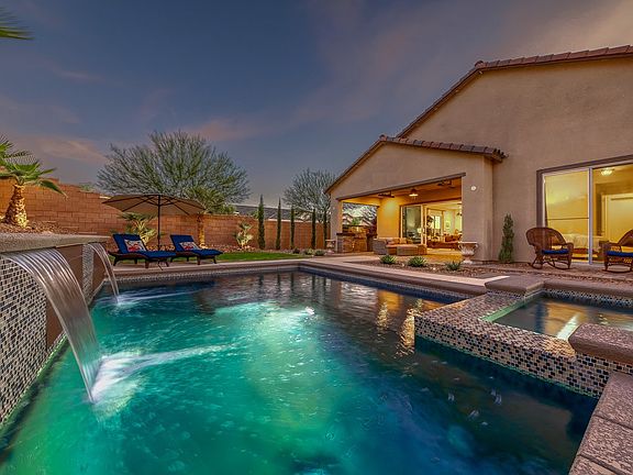 Stunning 1 Story Inspirada Home!! This Home Sits On An 8,000 Square Foot Corner Lot, Just Around The Corner From The 20+ Acre Aventura Park! There Are Too Many Upgrades To List In This Home, Including Gorgeous Tile Flooring, Quarts Counters, Tile Backsplash, Large Kitchen Island, and More! Head Outside to the Pavered, Covered Patio With Built In Heaters And BBQ, Stunning Pool and Spa With Waterfall Features, And Very Well Maintained Landscaping!