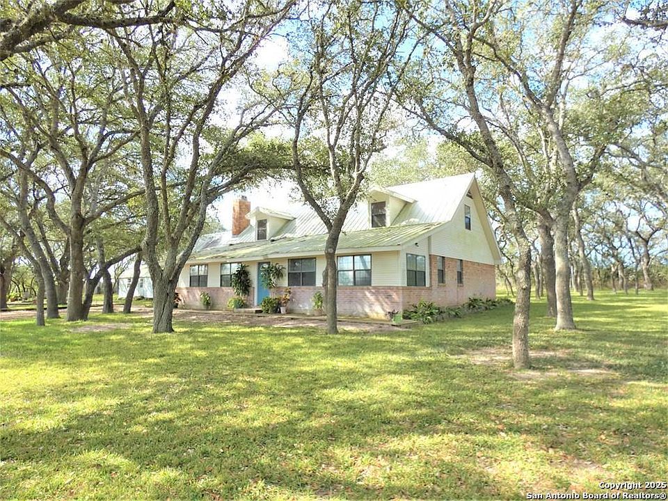 If you appreciate the sunsets & sunrise, come & enjoy this attractive two-story home with 12.5 acres. Shaded oak trees throughout the property. The entrance room can be used as an office, exercise room, or even a plant room, with a view of a shimmering pond & a windmill. A long-curved driveway leading up to the four-sided brick home. A screened-in porch covered with screens to keep out insects, while still allowing access to fresh air and a view of the surrounding area. Great for entertaining friends & family. The open-concept layout features a spacious living area with a gorgeous wood fireplace with built in bookcase shelves & cabinets. Perfect for gathering. Kitchen has a built-in pantry with ample of storage space & a stainless-steel vent hood over the island with a 5-gas burner stove & a double oven. The kitchen window over the sink allows for a wonderful view of the huge backyard. Granite counters, matching backsplashes & stainless-steel appliances. Off the kitchen is a walk-in area currently being used as a snack, coffee bar room & a wine fridge. A large utility room with many cabinets, counterspace, with washer & dryer connection along with a half bath. Spacious main bedroom suite on the first floor with adjoining bathroom. matching double vanities. & a large walk-in closet. Upstairs has two spacious bedrooms with a full bath. Attic storage is in the hallway. The yard around the home has so much to offer. Large workshop attached to the carport & a man-cave building with a nice built-ins. A nice wood deck with trees & a wood deck walkway. Clothesline. The acreage is divided into several pasture & it is fenced & cross-fenced. Gate is electronic. Currently horses are enjoying the pasture along with a horse arena on the property. Property has 3 wells and a septic tank. It also offers a perfect blend of rustic charm & amenities. This pretty home is ready to view.; Original MLS#: 113388; Buyer Name: Peter Gonzalez; Deed Restrictions: ; Features: Porch-Front, Porch-Covered; Gas Co: Other; Home Warranty: No; Land Dimensions: 12.5 acres; Showing: Appointment Needed; Water District: No; Water Heater: Electric; Windows: Double Hung