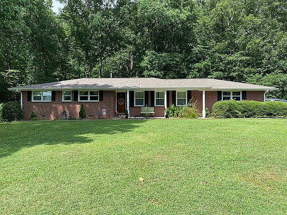 Just outside city limits, & situated at the back of a large lawn, it is move-in ready. Easy family access thorough carport into kitchen, front entrance into sunlight infused great room. Handsome LVP floors, scratch resistant and pet friendly. Huge stone fireplace in den/dining area is magnificent focal point. Master bedroom boasts a beautifully tiled shower, double vanity & walk in closet with a window. Private back yard w/ patio just off the den, a wooded mountain as a backdrop. Incredible huge rocks, a spring, and running stream to left of patio area. Majestic trees welcome you home. House sits on just under 6 acres. Close to town and the interstate, but far enough away to enjoy the peaceful evenings. Everything in the house has been remodeled and is only 2 years old. Roof, HVAC, gas lines, electrical, flooring, paint, all has been redone and is still like new. This house is move in ready and in a perfect location!