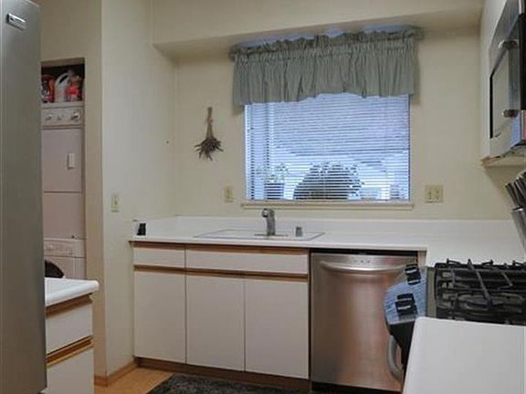 Well maintained Unit near Pool! Ground level/one story unit, updated kitchen with tile counters, two patios, in-unit laundry. Wood-burning fireplace, close proximity to detached one-car garage