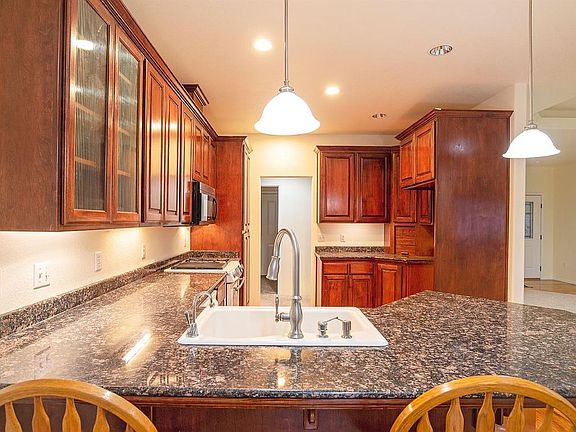 This beautiful split floor plan features 1790 sq. ft of living space with three bedrooms and two bathrooms. As you enter this home you will notice the large living room with accent ceiling lighting and a gas fireplace. The kitchen with granite counter tops opens to a dining area. There are plenty of counter space and cabinets. If you are looking for a formal dining room, we have it! The master bedroom is very large featuring a nice bathroom with walk in closet. Across the other side of the home you will find indoor laundry room as well as two other bedrooms and a bathroom. Outside you will find a well manicured lawn, covered patio and RV parking. Must tour this home.