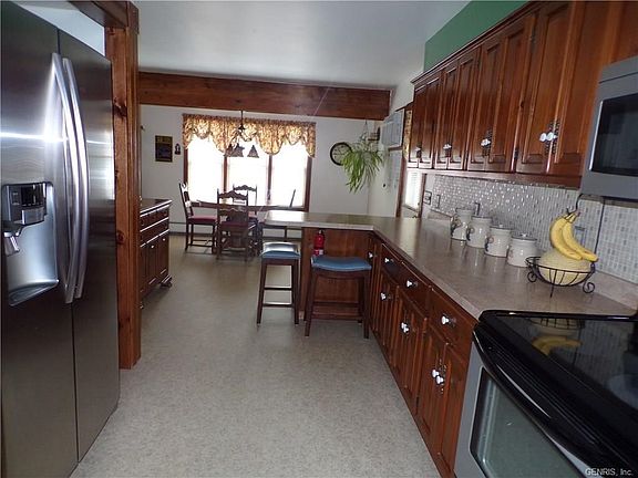 Well cared for ranch style home decent lot & partially fenced in back portion. This home feature eat-in kitchen, generous sized dining room & large living room with cathedral ceilings, wood burning fireplace and tall windows overlooking the scenic backyard. Master bedroom has its own bath w/walk-in closet and some "built-ins" and walk-in shower. Second bedroom, also on first floor is good size and all have closets & solid wood doors/floors throughout. The lower level boasts a carpeted living room, 2 good size bedrooms, laundry room & storage room with built-in shelves. Egress window installed as well. The out side of home has that "entertaining" feeling with 2 level deck, coved breezeway between garage & house PLUS huge blacktopped driveway for guests. Read private remarks. 24-48 to show.