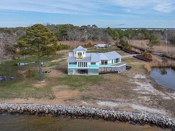 Coming Soon! One of the most unique waterfront properties I have ever seen! 4.3 acres at the mouth of the Wicomico River offering incredible views and privacy. Home was started in 2019 and completed in 2 phases with the final phase just completed. Fabulous 1250sf 2 level home on piers with glass across the back for stunning views from every room. The first floor has a huge master with en-suite, glass wall and a deck that spans the entire room. Custom wood staircase leads to a open concept kitchen, dining and family area with stainless appliances, silestone faux concrete countertops, kitchen island, covered deck and a second full custom bath. Upstairs is a second "Lighthouse Bedroom" with it own private deck and views that will inspire. The entry floor is fully insulated and includes a oversized single car garage. huge mechanical room. There is covered space for your toys and a outside shower! Home offers geothermal heat and air to the main section and ductless heat pump for the newer section. The homes exterior is maintenance free with metal roof and hardiplank siding. Separate outbuilding with water and electric and a separate room which could be used as a shop or a office! The quality of this build is impressive with detailed touches throughout. Please see the Fly-Through Video and call for a private tour! Just a short drive to Ocean City, Assateague and other area hotspots and a few hours from DC and Baltimore Metro areas!