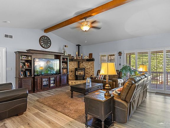 Take a walk through this beautiful custom ranch style home. Situated in majestic Bear Valley Springs, this unique home offers 2.8 usable acres for your equine needs. Has an abundance of storage to include three large sheds and a recently added 1200 square foot garage / shop. 3 bedrooms 4 baths, fully renovated exterior and interior to include custom granite counter tops, lifetime flooring, wood plantation shutters throughout, walkout basement / game room with office which is an additional 988 square feet, that is not included in the 2200 square feet of main house. Basement can be easily made into a Junior Accessory Dwelling Unit. Fully fenced exterior with post, rail and small animal wire. Completely repainted in 2025 and a new roof installed in 2016. Low maintenance front landscaping with a circular driveway, a 22KW whole house Generac generator with auto switch and a water softener system. The rear yard is quiet and peaceful, with a park like feel, outdoor cooking area to meet your entertaining needs, serene and private. fruit trees and mature trees shade the rear yard on those summer days. All this just off the valley floor with a great view. Your country living experience awaits, this community features more amenities than can be listed, but here are a few. A 9-hole golf course, two lakes (fishing), tennis / Pickleball courts, recreation and equestrian centers, Olympic size pool, two restaurants and a saloon, country market and gas station, riding trails and nature trails for the outdoor enthusiast. Bear Valley even has its own R/C airplane and car areas. Come see this one of a kind home, enjoy this wonderful community and own a piece of country living.