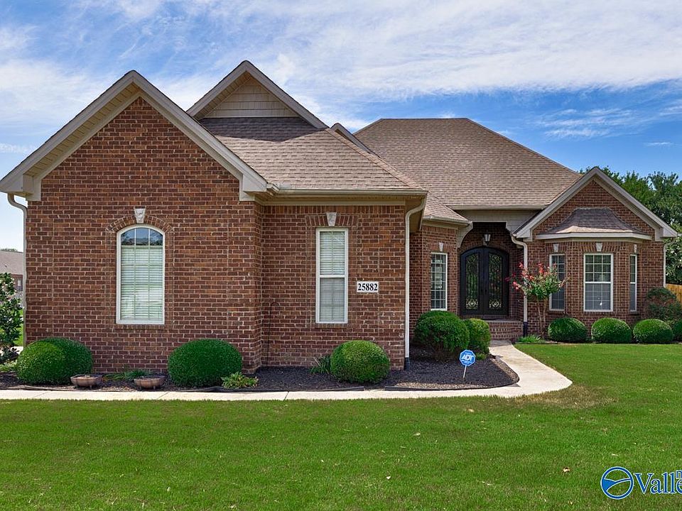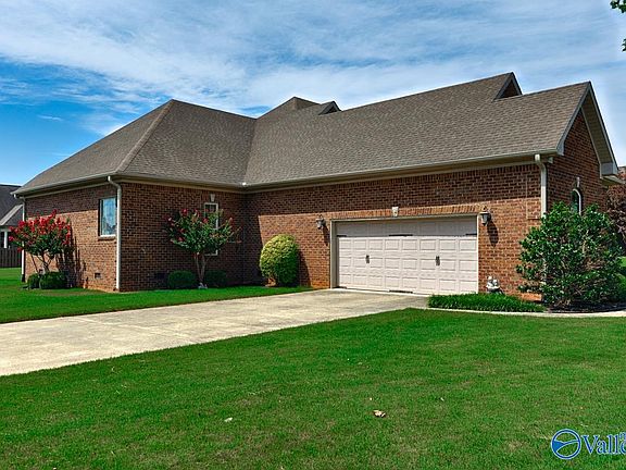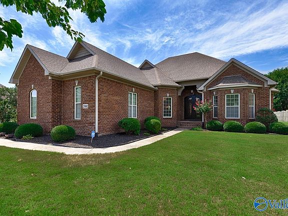 Location, location, location, tucked away in Newby Plantation. Located between highway 72 and Huntsville Browns ferry easy access to 565 and I-65. Just a few miles from the new Toyota/Mazda plant. All Brick home, open floor plan, covered back porch all located on .43 of an acre lot. Absolutely gorgeous double entryway doors, hardwood floors, extensive trey ceilings and loads of extra trim work. Kitchen has an incredible island, overlooks breakfast area and family room which has a gas fireplace and storage on either side. Enjoy your office space with built in shelving and a desk located off the kitchen. Home has been meticulously kept by one owner. Large 2 car garage. 3 year old A/C.