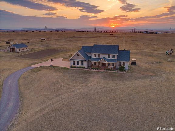 35 acres fully fenced for your animals to roam! Welcome home to this gated equestrian community with miles of bridle paths. Custom 4 bed, 5 bath home on 35acres that includes 36 x 34 horse barn with electric, water, 3 stalls, and tack room. 60 x 120 fenced outdoor arena. Fenced pasture with water and electric. Stunning unobstructed 360 degree views including Pike's Peak. Main floor master suite with walk-in closet. Updated kitchen with white cabinets , quartz countertops, and stainless appliances. All bedrooms have own private bathroom.