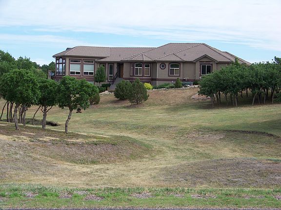 A custom stucco/stone ranch home on 4.5 acres in beautiful Keene Ranch community; near Castle Rock, Colorado. The home features a stone fireplace and expansive windows to view the south/west mountain range which makes this living room a great place to relax. The kitchen includes all stainless steel appliances, a flat ceramic Jenn-Aire cooktop with exhaust venting and an eating area along with counter seating The electric cooktop could be converted to gas if preferred. The large, formal dining room makes entertaining a breeze with built-in cabinets and granite serving area. You won't want to leave the spacious master bedroom with its sitting area, a walk-in closet and a five-piece bath. A carpeted office with French doors, a utility room with front loading washer and dryer, powder room, an over-sized insulated 4 car garage complete the main layout. When you are ready to enjoy the outdoors, a maintenance free deck enables you to marvel in the splendor of the Front Range. The walkout level features 2 large family rooms areas, a stone fireplace, two bedrooms plus 2 full baths, a wet bar for your family and/or guests. The one area can be used for exercising/crafts; theatre room or an extra bedroom. This home has low utility bills per month ($300) due to the southern exposure and the excellent windows/doors/insulation factors. The home includes: * a concrete foundation (not an engineered system) * a standard septic system (not an engineered system w/multiple pumps) * a concrete roof (not an asphalt roof) * a large/deep 4 car insulated garage with high ceilings * an irrigation system * electric dog fencing around the entire 4.5 perimeter This beautiful green backyard can be transitioned into a horse stable/arena/property.This location provides easy access to Denver or Colorado Springs Tech Centers, as well as both airports.