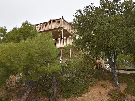 Enjoy the panoramic views of Lake Nacimiento and surrounding Oak filled hills from this comfortable and perfectly oriented Oak Shores home. You have great views from the main living area and master bedroom both with large decks to enjoy those fantastic morning sunrises and peaceful evenings as the sun sets over the western hills. A 2 car garage is on the bottom level. The main level features the living room dining area kitchen, very open, great for entertaining or just relaxing. Also on main level are 2 bedrooms and a full bath. The top level is where you find the large master bedroom and master bath. Plenty of level driveway space for a 40' pontoon boat or RV. 2 car garage and 40' deep carport too! Polaris Ranger is negotiable.
