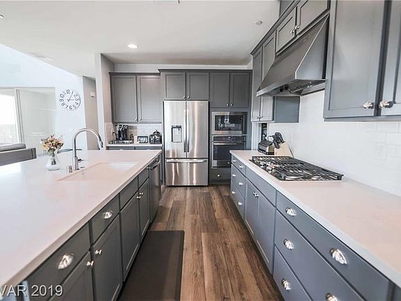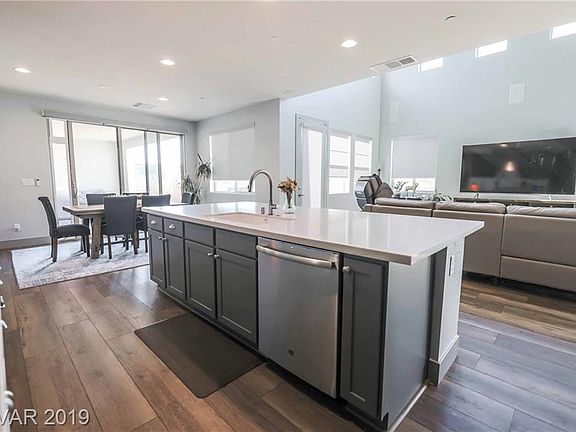 Modern Inspirada Beauty! Open floorplan enriched by outdoor living space off foyer and private yard, natural light throughout. Plank tiles , Quartz counters, S/S appliances, dark grey cabinets. 1 bedroom downstairs with own private bathroom with w/i shower, Loft upstairs,Laundry room upstairs.3 car garage tandem. Corner lot. 2 covered patios. 2018 year built. 5 community pools, many acres of parks.
