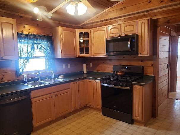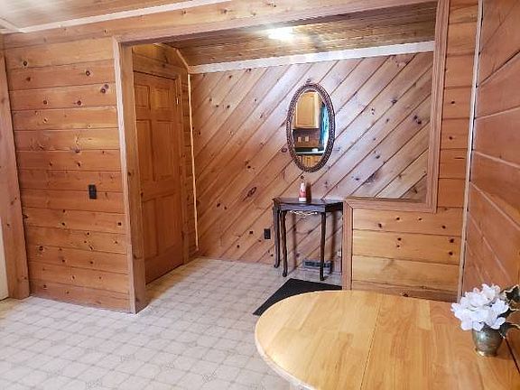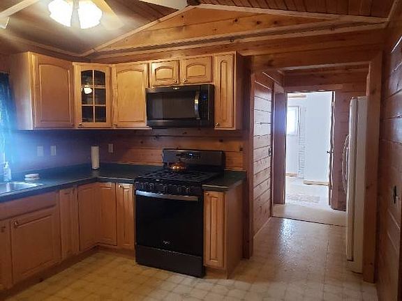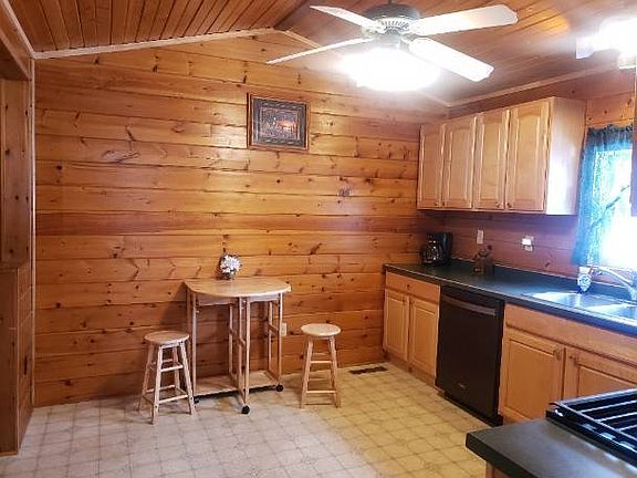 GREAT Family home or vacation getaway, steps away from the creek & lake! This 4-bedroom house just had some remodeling done and upgrades! The kitchen has knotty pine walls & ceiling with spacious pantry/closet for extra storage. Newer appliances except for the refrigerator which all are included. A nice-sized laundry room with newer washer & dryer also included. Next is a bedroom with new drywall & wood ceiling. Turn the corner from the hallway and you will find yourself in the living room with bay window, pine walls & ceiling and some new drywall. A step-up into the master bedroom with both pine and log walls to keep with the rustic theme along with a nice walk-in closet. The full bath is nicely finished with pine walls and tile flooring. There are two smaller bedrooms w/closets, on each side of the bathroom. Can be used for more bedroom space, an office/hobby room or extra guest rooms. Both have been re-done with new drywall & wood ceilings. The attached, mostly insulated 2-car garage is off the back side of this house and has access into the kitchen. The nice 1/2 acre lot you will find a private backyard with patio area, a shed for extra storage or hobbies and a fence which runs along the east side of the home. Call today!