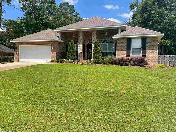 Welcome to Lakeland!! This home sits in a great location, close to I10 and the Baldwin Beach Express. This home is walking distance to the community clubhouse and pool. As you walk into the front door, the formal dining room and a bonus room are to located on each side. In the living room you are welcomed with alot of natural light and high ceilings. The kitchen is ideal for entertaining! There’s an eat in breakfast area and a breakfast bar. There’s granite countertops in the kitchen and a pantry for storage as well. Moving on to the nice primary suite. This secluded space has gorgeous trey ceilings and radiant light coming through both windows. Adjoining is an amazing master bathroom. Complete with custom backsplash, garden tub, and walk in shower. Three other bedrooms, and one other bathroom is also offered in this home. Walking out to the sunroom, you can enjoy the warmth of the sunshine. Outside of the sunroom is a great patio for afternoon grilling or just listening to nature. A few upgrades include a new fence, storage shed in the back and new flooring throughout (all 2019). 2 car garage and mudroom / Laundry room add extra room for all your needs .Schedule your appointment today. Don’t miss out!