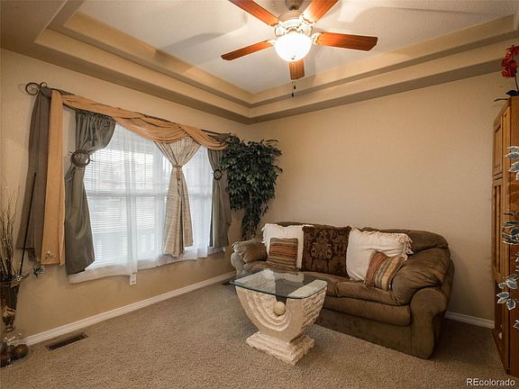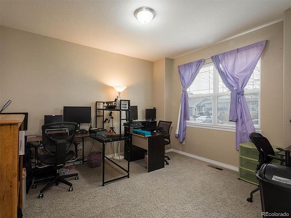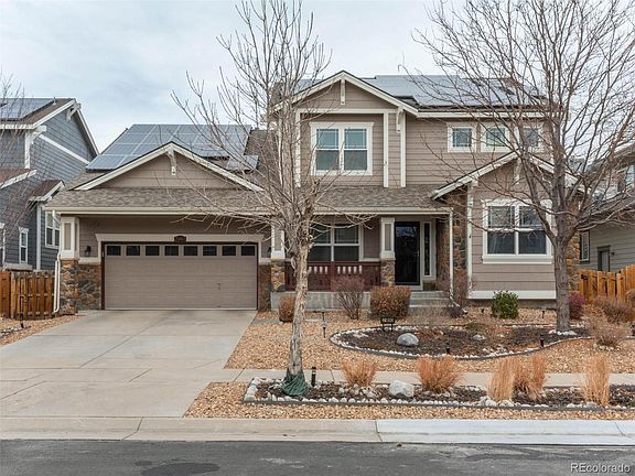 Meticulously maintained former Lennar Model home that is sure to impress - located close to park and open space. Enjoy convenient access to DIA, Southlands Mall, I-70, E-470/I-225 this 5 bedroom, 4 bath home has all the bells and whistles. Volume ceilings, granite countertops, hardwood floors, large rooms. A private main floor master suite is accessed through double doors where you will enjoy a large bedroom, sitting room with arches, huge walk in closet and master bathroom. The kitchen has ample counter space, granite counter tops, maple cabinets, counter height bar seating which opens to a large kitchen nook. Beyond is your great room with lots of windows, fireplace, volume ceilings, built in speakers. The formal dining room is currently being utilized as a comfy living room with ceiling fan. There are three additional bedrooms and a loft area on the upper level, together with a bathroom with double vanity, tile floors, water closet and bath tub. The basement is an entertainers delight with a large open plan media area with projection system and remote controlled screen, bar area with seating. In addition there is a game room, gym, additional private office as well as a huge secondary pantry, guest suite with 3/4 bath. Smart wiring throughout the home, xeriscape yard with drip system for water conservation certified by the City of Aurora, solar panels to reduce those heat bills with an assumable lease. New hot water heater, hail resistant roof and interior and exterior paint is 2 years old. This home really is a must see.