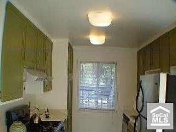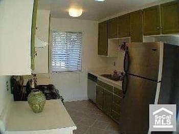 Newly renovated 1 bedroom/1 bath Casa Loma condo. Hard surface flooring throughout. Spacious living room with sliding doors to front patio. Adjacent dining area with sliding door to Balcony. Great kitchen with quartz countertop, gas range and vent hood, farmer style sink and lots of cabinet storage. Refrigerator is included without warranty. Large bedroom with wall to wall wardrobe closet. Mounted TV in bedroom is almost new and will be left (without warranty). Bath has both tub and overhead shower. Almost new washing machine also provided. Each building in the Casa Loma community provides a coin operated full size washer and dryer located in the carport area. Central heat and AC. The condo comes with one reserved carport and additional street parking is available. Community Pool. Fantastic location near 3 shopping centers and easy access to 5 Freeway. Partially furnished and furnishings can be left for tenants use or removed. 1 Year Minimum Lease Term. Cat ok. No Dogs. No Smoking.