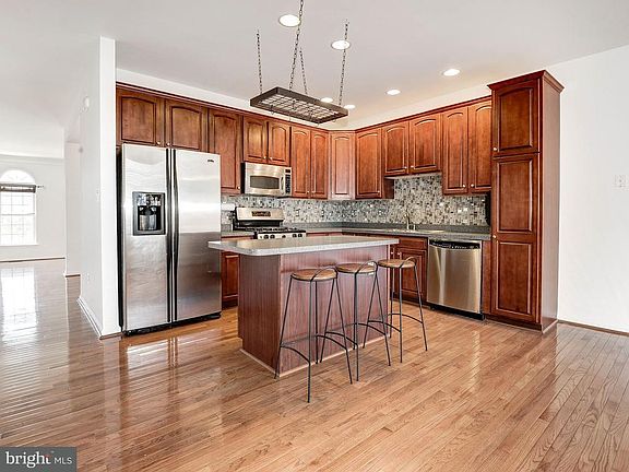 Fantastic, light filled HUGE 2 car oversized garage townhome in the heart of sought after South Riding! Kitchen boasts 42" cabinets, island & SS appliances. Wood floors throughout main level. HUGE open rec room in basement. Deck & private patio. Sitting room & table space in kitchen. Master BR features vaulted ceiling, Master Bath features soaking tub & separate shower. No pets. Don't miss!